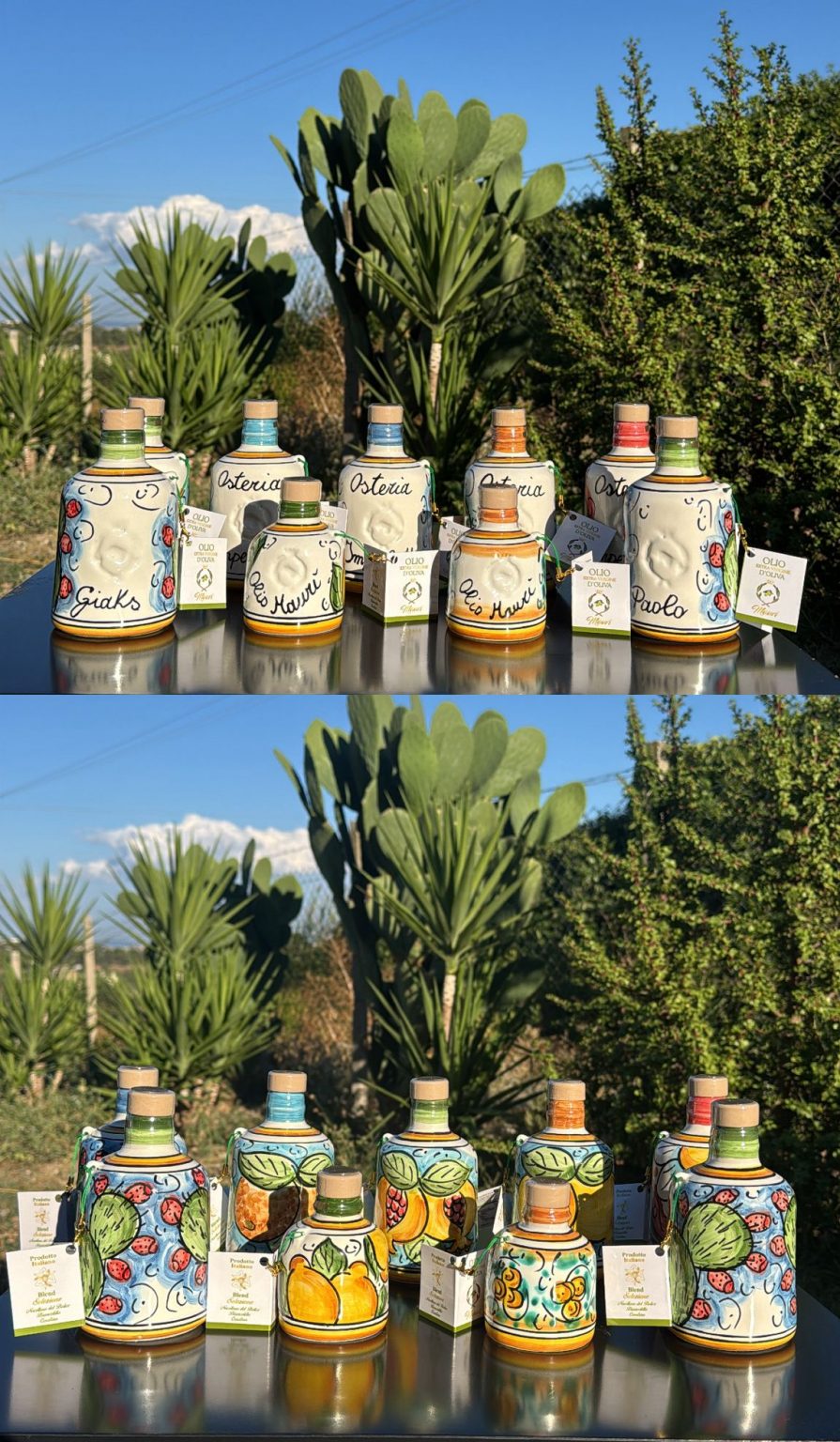 Orcio In Ceramica dipinto a mano, personalizzabile e ispirato allo stile siciliano, arricchito con Olio Extra Vergine D’Oliva Maurì